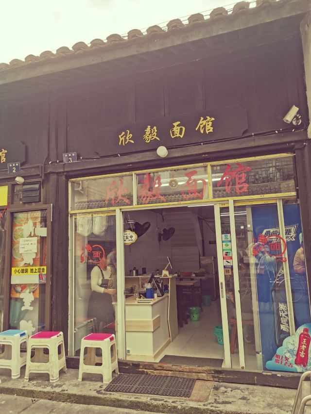 店名:欣毅面馆 地址:城隍牌楼四牌楼3号 交通:13路到鼓楼 营业时间:7:00-14:00 17:00-20:00 人均消费:31元 [薄荷]环境: 鼓楼城隍牌楼巷,南宋皇城根儿,城市扩建被遗忘的地方,保留了老城区的原汁原味。青砖、黛瓦、老房、城墙、石库门,狭窄破旧的街道,浓郁的市井气息,老人们自得其乐,安享晚年。 从小爱安静的我,沉溺于这段市井的喧嚣,老底子的原貌,多怕它随岁月消逝,如泡沫般再也找不到。 城隍牌楼巷,老字号美食如云。 每一家,身后都是一段杭州往事。 欣毅面馆,延续几十年前的砖木老房结构,一楼是厨房和堂食区域,二楼是阁楼。环境布局紧凑,干净整洁。步入其中,仿佛时光倒流,儿时回忆如泉涌。老板和顾客都说着杭州话,我也放心大胆说杭州话,亲切的杭州乡音,难得说得如此酣畅淋漓。 [服务铃]服务: 吃美食要趁早,于是没吃早饭,十点多就到了。收银阿姨告知虾爆鳝要老板亲自来烧,十一点以后才到,心里有些失落。幸好,老板娘风尘仆仆赶到,立马核销券、收银全搞定。 皇城根下的杭州人,热情而豪爽,顾客也多为周边居民。老乡见老乡,乡音闻乡音,瞬间无距离。 餐具等摆放在消毒柜里自取,安全卫生。 |虾爆鳝^满满一大碗,用料儿十足,端上来就欣喜。鳝段无骨酥脆,毫无腥气,炸得相当入味。大颗虾仁,晶莹Q弹,新鲜嫩滑。碱面细长且柔韧,老杭州欢喜的味道。汤底油而不腻,鲜美四溢。胃口寡淡的我,几乎吃光盘。这虾爆鳝面,口味实在惊艳!墙裂推荐! 欣毅面馆,一碗虾爆鳝,杭州乡音还。 城隍牌楼,百年浮与沉,一笑都释然。