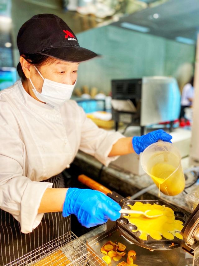 michelle0519钱江新城万豪酒店就在公司旁边,上班天天经过,却没有进去过。这回沾公司的光,跟着领导去万豪酒店参加会议,晚餐就安排在酒店一楼的自助餐厅,太满足了。 餐厅最明显的位置是海鲜档和甜品台,有雪蟹脚,贻贝,螺,大虾,毛蟹等,各式蛋糕甜品更是让人眼花缭乱。 第一次在自助餐厅吃到鲍鱼捞饭,可以说是惊喜了。大个的鲍鱼,米饭上浇了鲍汁,配了大颗冬菇,看着赏心悦目。 现烤生蚝,大虾和羊肉串,闻着好香,也很受顾客欢迎。 服务员妹子温柔可亲,会主动帮顾客端食物,也会帮小朋友夹蛋糕。 据说吃自助餐吃最好境界是扶着墙进来,扶着墙出去。如果不是顾忌着形象,我肯定会吃到扶墙而出的。