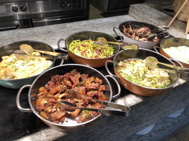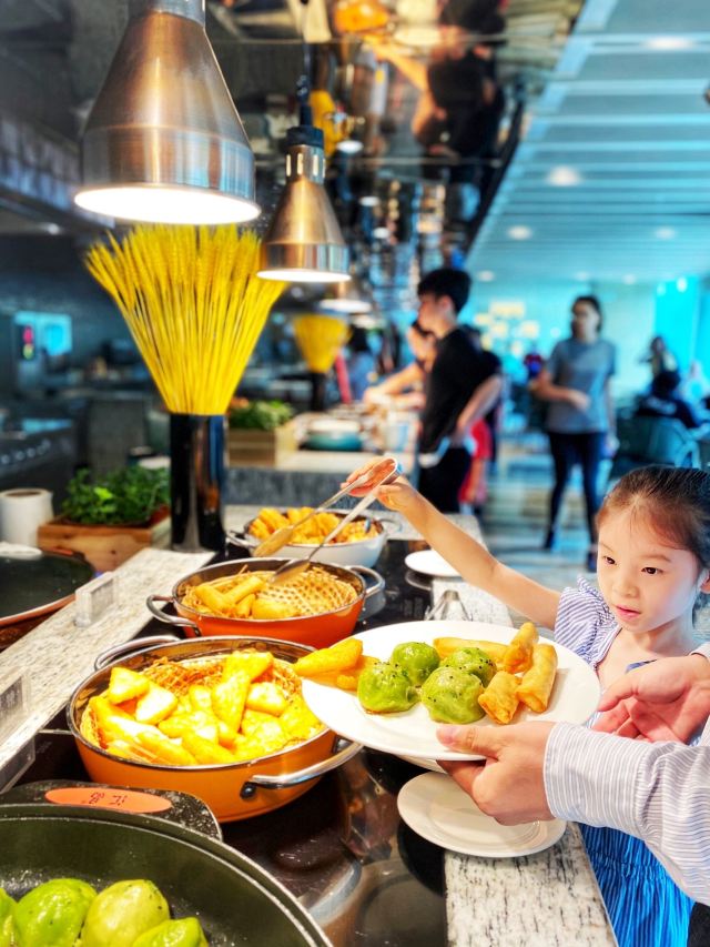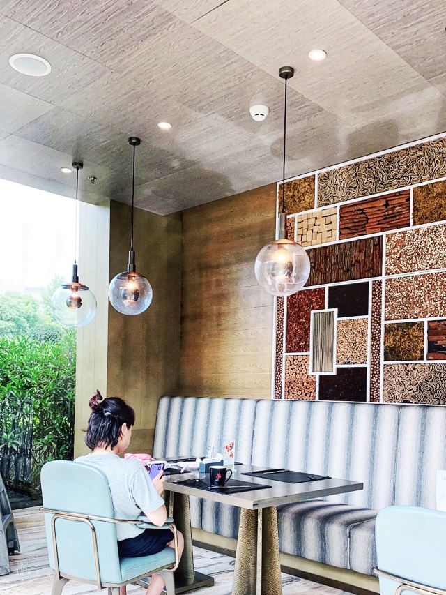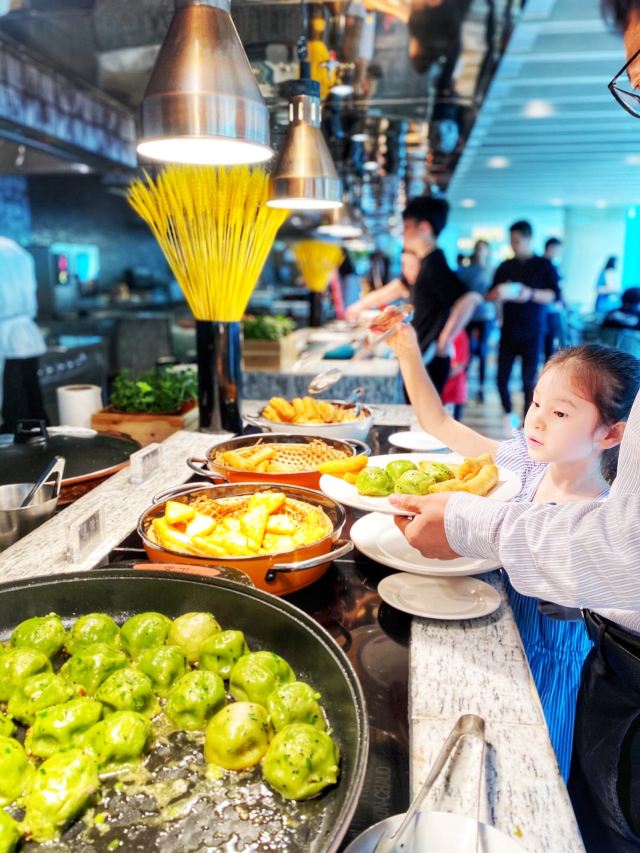 杉尼这个五星酒店的自助早餐也忒简单了…… 🖼餐厅环境:万豪酒店,听听就应当高大尚的,一线江景,餐饮怎么也不会逊色。虽然标明全日餐厅,可早餐却相对简单,居然没有日式寿司🍣。唯一可以的是环境,简洁明快的日式风格。服务态度虽不错,但是有些服务员不够机灵,可能与年轻有关,需要多锻练。 📍详细地址:杭州钱江新城剧院路与新业路交叉口。 交通攻略:坐地铁🚇四号线江锦路D口出,步行二百多米即到;开车万豪酒店有地下停车场️,一个小时十元。住店免费前台领取24小时停车券,吃饭领4小时停车券。 营业时间:7:00-21:00。 🍽推荐菜品: 1.干菜包:味道鲜美,营养丰富,蒸煮干净清爽。 2.鸡蛋仔:现场烤制,新鲜出炉看得见,香郁可口。 3.青草煎包:绿色的健康食品,就是煎包,外面是绿色的。 人均消费:150元。 餐厅总分:环境5分,服务4分,菜品3.5分,品种太少。 📌小Tips:建议双休日早点前往,否则九点开始会没位置。