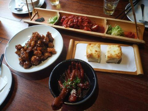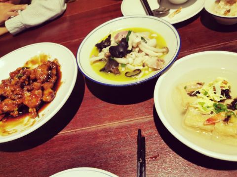 彼岸之澄龙翔桥地铁站附近好吃的杭帮菜还是蛮多的。这次路上试试大牌大。 巧遇了不晓得是刚演出结束还是cos play的一群汉服爱好者,配上古典风的建筑,还真的有点穿越时空的感觉。 麻油笋尖,春笋正当季,简单的用水焯一下,麻油凉拌下,就很嗲了。 南乳扎烧,几乎每桌必点,可以选原只或梅肉,梅肉款的吃起来不会那么腻,腐乳汁的香气已经渗入到扎肉里,咸香可口。 糖醋里脊做成了炸丸子的形状,表皮更酥脆,还是蛮喜欢这种改良的。 桂花酒酿圆子,普普通通,可能自己家里做的更好吃呀。 桃花酿,粉嫩嫩的酒瓶和淡粉色的桃花酿,淡淡荔枝果香,一小盅一小盅得慢慢品,还是蛮有趣的。 这些加起来人均也不到80块,性价比真心很高了。晚上5:00左右还不要排队,5:30左右就已经需要等位了,要吃还是尽早来~