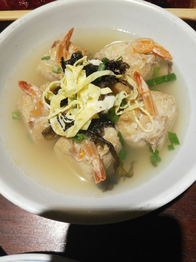 摇啊摇平价杭州菜馆 惊先无敌臭豆腐 这家店是我们在杭州的最后一天中午去吃的,想着也就随便吃点,就去赶高铁回家了! 环境:挺不错的,是那种比较复古的木质风格,家里老人觉得还蛮有趣的,一直在说这里的装修、结构啥的。 中午11点多的时候过来,直接上的二楼,没什么人,这里的大桌子还是挺多的。 苋菜梗蒸臭豆腐 ♥️♥️♥️♥️♥️ 超级无敌推荐啊!!! 虽然它其貌不扬,而且还特别的臭(这个臭豆腐的臭真的和平时路上那种炸臭豆腐的味道不一样) 但是真的好好吃啊!爱了 我去特地百度了一下,据说苋菜梗也是浙江这块的名菜,就是特别的臭 这道菜把两个特别臭的东西蒸在一起,把臭味叠加,真的是绝了!! 哈哈哈哈,其实也还好啦,就是比正常臭豆腐臭一点,更好吃一点,我们一大家子人都可以接受的,喜欢吃臭豆腐的一定要来试试。 卤大肠 ♥️♥️♥️♥️♥️ 这道菜也好吃的!最外面的一层是脆脆的,口感很好,也挺入味的,大肠的臭味也没有特别重。 这个卤大肠比我这几天在其他店吃的要好吃! 可以试试! 冲着上面这两道菜,我就决定给这家店5颗星!! 真的是这几天,比较让人惊艳的菜! 杭州名点(迷你版) 旁边还有一张小纸,可以看看这几样糕点的介绍,一共有6块,我们一人一块就吃掉了。 白切鸡 马蹄莴笋 南宋酒香虾 这几个菜也还可以啦,普通家常菜的感觉。 宋嫂鱼羹 ♥️♥️♥️♥️ 这个我是第一次吃,个人还是挺喜欢浓稠的汤的,感觉有点像酸辣汤,但是比酸辣汤清淡。 这家店真的很便宜啊,我们7个人,好像一共只吃掉了300块钱左右!? 比较接地气的餐厅,虽然摆盘啥的比较普通,并没有那么精致,但是味道还是可以的!特别是臭豆腐!!哈哈哈哈 以后有机会还要来吃臭豆腐!!