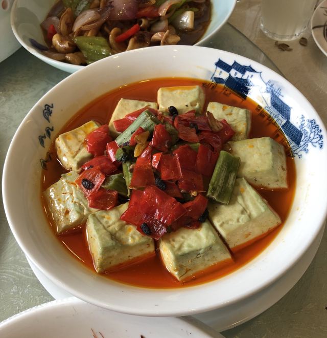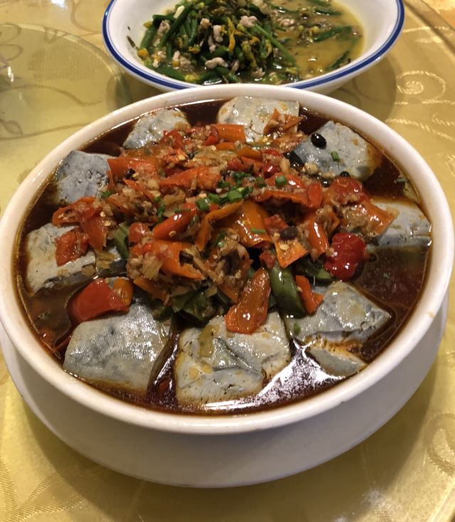 今天重点不说醉蝶轩,说一说杭州人爱吃的臭豆腐。 “臭豆腐真香”,杭州人爱这样说,听起来那么有违和感,可事实上这话是由衷的。 杭州老城区的小巷里散落着很多炸臭豆腐的小摊,杭州的美食节少不了臭豆腐的身影,杭州的大饭店也把臭豆腐作为本地特色菜。 臭豆腐常见的有三种做法,一油炸,抹上辣酱,趁热吃,就是一道美味小食。二蒸,越霉越美味,如果还嫌不够过瘾,那就再垫一层霉苋菜梗(名曰双臭),一把剁椒,一起蒸(图2)。图3为另一家店的蒸双臭。三炒,臭豆腐煎至结壳,毛豆炒到起皱,放点酱油放点糖放点水一起煮,起锅前再添一把小葱。 看到这里有没有想试一试很香的臭豆腐呀?