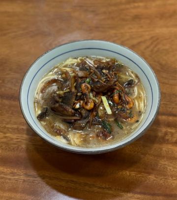 小辫子,面馆。 转塘“三面”,另有来翠、春雪。 长埭村,农民房负一楼,空间比寻常面馆大。上午刚十一点就已满座,据说一日要卖六七百碗面。 招牌是虾爆鳝,两物皆鲜美,至于野生不好说,加笋片蘑菇洋葱等爆炒,汤头浓郁,然镬气略逊于方老大。另点三样浇头,肚片、猪肝、田鸡,选料则有些问题。 到此,一吃。