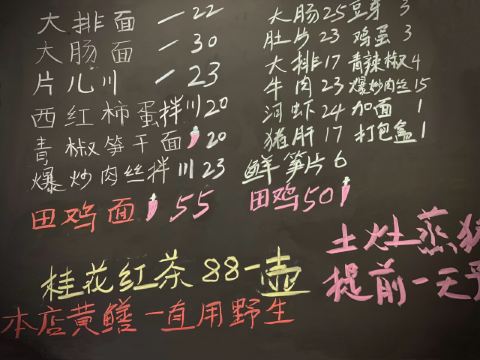 虾爆鳝,虾腰面,腰花拌川,牛蛙拌川,牛肉拌川,猪肝面,猪三宝汤面,番茄肉丝拌川,青菜肉丝拌川,猪蹄,肥肠拌川,河虾,腰花面,卤味,大肠面,拌川