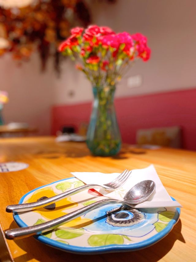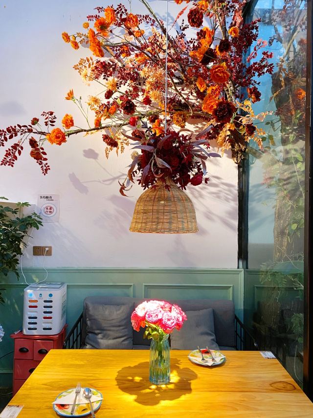 杉尼【达人探店分享】---如诗的花泰 【环境及感受】十分令人意外!晚餐时间居然只有我们一桌,感觉有点包场的节奏!在繁花似锦的花泰餐厅,我愿意停驻一整天!不过卫生间区域墙面和地面不够干净整洁,希望改进! 【位置】位于武林路皇后公园内,地铁二号线凤起路站下,走三百米不左右即可;公交车130路十四中下,三百米即到;附近有停车场收费十元一小时停车。 【价格】人均价格在150元左右。 【菜品1】玛莎拉咖哩鸡 (食材)咖哩、鸡块 (特色)微辣的咖哩配上鸡块味恰到好处 【菜品2】鲍汁西兰花 (食材)西兰花 (特色)浓香的鲍汁浇在西兰花上,好吃 【菜品3】芒果糯米饭 (特色)香浓的沙拉浇在彩色的糯米饭上,再配上新鲜的芒果,绝配 (食材)芒果、糯米饭、沙拉酱 【服务态度】感觉店员效率不错,几分钟就上了,热情周到。 【适合人群】主要面向朋友、家庭聚会,价格适中。 【商户对比】感觉店铺的环境优良,新鲜可口,适合一整天喝茶和看书和吃饭。 【优惠措施】有团购优惠。