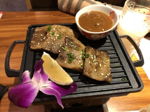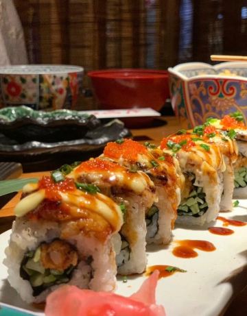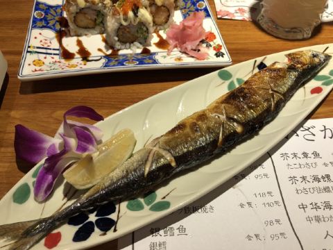 michelle0519提前预订了大川日料的座位,过来不用等位。店不大,但是装修的很精致,看起来很舒服。 可尔必思,要了常温的,喝一口,齁甜齁甜的,我还是喝茶水吧。 厚切牛舌,牛舌切的比较厚,一共四片,配了好吃的酱料。 蔬菜沙拉,有生菜,紫甘蓝,黄瓜,胡萝卜,圣女果,小玉米等,酱汁浓稠,撒了蟹籽做装饰。 牛肉寿喜锅,牛肉卷放了很多,还有菌菇,豆腐,胡萝卜和生菜等,底下还有泡菜,配了日本生鸡蛋蘸牛肉卷吃。 鳗鱼炸虾寿司卷,不推荐,鳗鱼又小又薄,炸虾裹的面粉太厚,而且炸过头了,吃起来很硬。 秋刀鱼,细细长长的一条,一定要趁热吃,吃之前挤点柠檬汁能去除鱼腥味。 餐后赠送了甜品,抹茶大福,软硬适中,抹茶味浓。