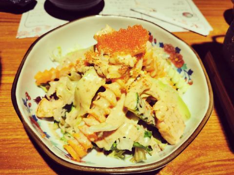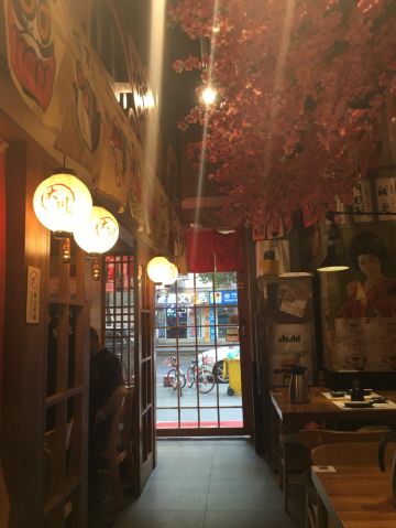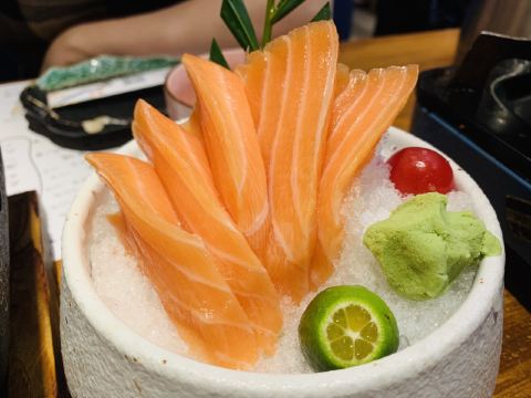 平安夜的蚊子店名:大川日料解放路店 地址:金鸡岭46号 交通:地铁一号线城站 营业时间:11:00-14:00 16:30-24:00 人均消费:116元 [薄荷]环境: 大川日料坐落金鸡岭,一条浙二医院与市三医院之间的老街,邻居是赫赫有名的吴山拌川。身处于闹市,却隐隐于市。门头极其低调,不显山,不露水,似乎不小心就会错过。 典型的日式居酒屋布局,延续了老房架构,两层楼的loft设计。推开门,一株株艳红色樱花淋漓绽放,尽显婀娜多姿。日式白灯笼悬挂,守护着居酒屋的故事。墙上贴满了日式的海报,把居酒屋浓郁的氛围烘托到极致。 纵容空间紧凑,座位密集,简易木栅栏隔开,便是一片独立的就餐天地。方寸之间,毫无压抑,浪漫雅致、温馨治愈、印象深刻。日式居酒屋的设计,不得不佩服地五体投地。 我们拾阶而上,在二楼就坐。阁楼的面积,只够摆下两张四人桌。顾客多了,不能开空调,会有些闷。还是建议小伙伴坐一楼吧。 [服务铃]服务: 预订时彬彬有礼,入店主动招呼,安排入座。就餐过程中,提醒要趁热吃。餐后免费打包。餐盘也都非常精致呢。 [玫瑰]推荐菜品 |精致刺身三拼^三文鱼、北极贝、甜虾三拼,肉质肥美,新鲜嫰滑,入口即化。 |烤银鳕鱼^银鳕鱼外焦里嫩,入口延绵。淋上酸甜的柠檬汁,酸甜中鲜美细腻。 |厚切牛舌^牛舌香味四溢,柔韧有嚼劲。蘸着特制酱料,牛舌的鲜嫩,愉悦地在舌尖开了花。 |三文鱼牛油果沙拉^五彩缤纷,清新爽口,营养开胃。 |火炙鹅肝手握^鹅肝肥美不腻,趁着热吃,软糯鲜香,口感甚微惊艳! |鳗鱼先生的饭^鳗鱼肉质滑嫩,咸甜的酱料非常入味。搭配蛋丝,拌饭更是香甜。 |牛肉寿喜锅^热气腾腾的牛肉寿喜锅,牛肉卷、豆腐、金针菇等,各种作物一起沸腾着热情。牛肉卷熟了,在蛋液里浸润,肥瘦相间,入口即化。 |可尔必思^冰爽酸甜、沁人心脾。 |日式甜品大福^饭后甜点赠送。外表覆盖着清甜椰丝、内馅软糯可口。 大川日料,饕餮今宵, 美食当下,忘却烦恼。