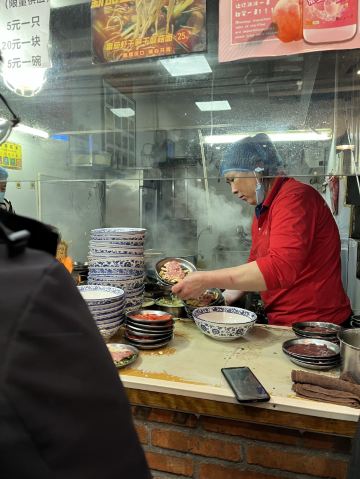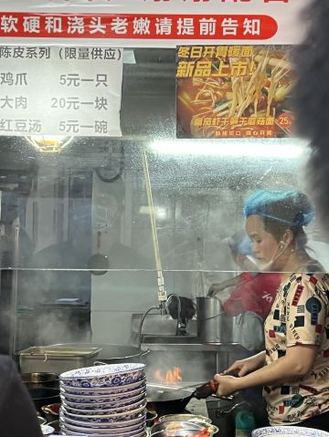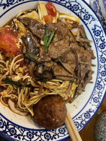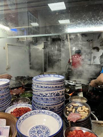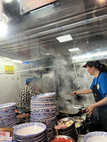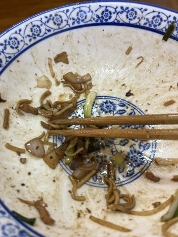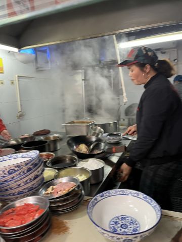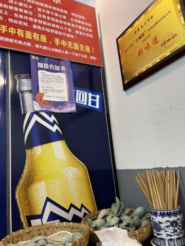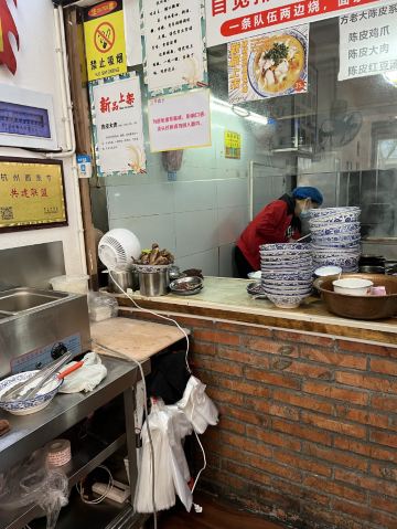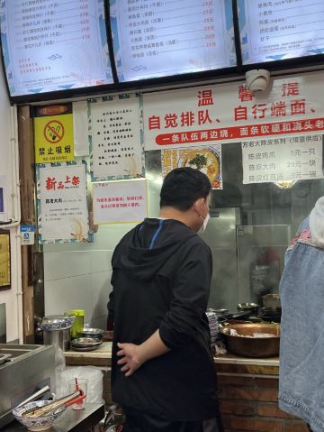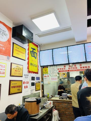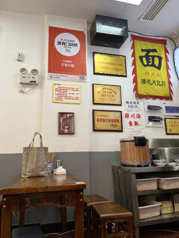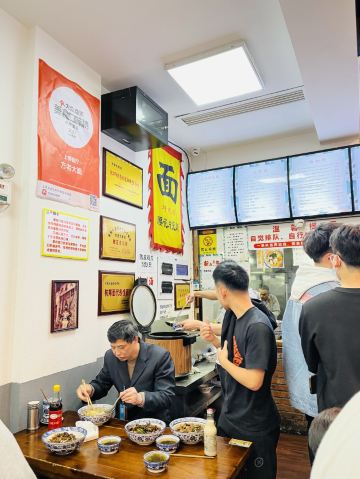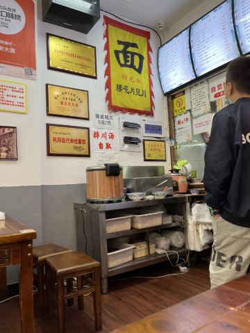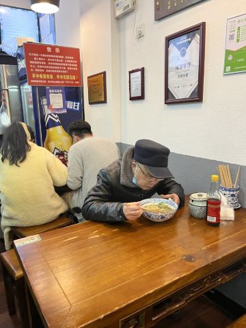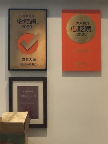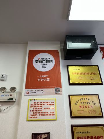 我这北方人的肚子啊!出门一周时间不吃碗面,还真挺没安全感的! 这家方老大面馆在我到达杭州的第一天,朋友就和我赞扬了!表达的方法就是“方老大这么好吃的面开在我家附近,我真是太开心啦”! 对的!我今天冒雨吃上,我也真是太开心啦!你的快乐我懂了![耶] 杭州的碱面条当地人叫「潮面」。就是加了碱的新鲜面条。煮熟盛好之后,单独猛火热攻各类硬菜,浇盖面上。对!这硬菜可是重点。鳝鱼去骨斩头尾走寸段,腰片去臊柳叶麦穗刀,猪肝推拉刀法走尖切片。各种刀法行云流水。食材入锅定型精准,块大饱满。这一锅一锅的出面走菜是个复杂且繁琐的活!出餐时长效率略低,但挡不住它真的好吃! 这就是勤劳智慧的杭州人,口欲生欢中的热爱。价格高昂丝毫挡不住开市时门庭若市一座难求的吵闹!没人会去理会墙上的荣誉和老板心中的欢喜! 如果有几粒生蒜搭配,我就不想家了!