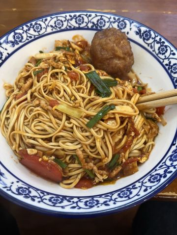 方老大面是蛮受欢迎的一家面馆,创立于1983年。现在这家店在江城路的629号。这家面最受欢迎的是拌川,看制作茄汁拌面可以说是艺术的享受。掌勺的阿姨动作非常熟练,往滚烫的锅里倒油,打鸡蛋,炒番茄,一气呵成,没多久,一碗茄汁拌面就制作好了。端上来,重油重色,味道十足。
