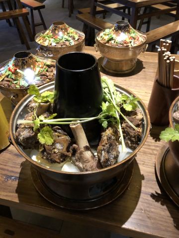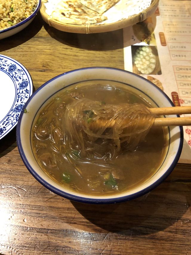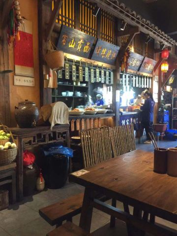 开朗的星辰啊饭店布置有股浓浓的农家味,走进饭店好像走进了正在办酒席的农村祠堂,炉子上炖着,锅冒着热气,桌子上摆着一只只瓦罐、炭烤炉,咸腿挂着蔬菜堆着。不过这里更整洁更有序更有布置感。 不得不提的是土猪肉包子。小小个儿两口一个,男士可能一口一个,肉馅很多,柔软带汁。先上来一份温热的,如果不是后来又上了一份火热的,美味的感受就会差那么一截。包子热透了以后面皮就有了弹牙的感觉,肉汁也更丰满,两者结合在一起才绝了,更好吃。 香肠炒饭不错,好吃。牛肉粉丝咖喱味较重,有点咸,粉丝很好,有嚼劲。麦香饼薄薄一层,偏油。鸭头很酥很入味,味道绝对到位,只是不太会吃辣。 还会再去。