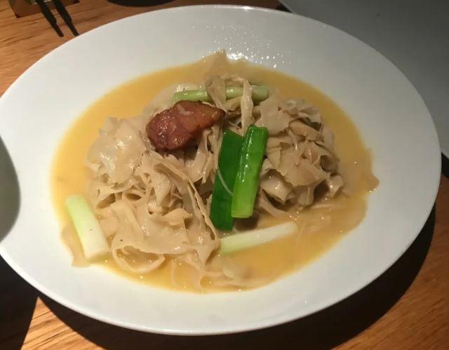 摆渡修行米其林餐厅,即使听别人夸了太多次也迟迟没有拔草。明明是可以当食堂的餐厅,我怎么这么晚才去嘛! ▹纸包蜜汁叉烧 每一块肉都层次分明,瘦肉丝丝入味瘦而不柴,肥肉入口即化不腻。这样的软嫩香甜是一口定情的,就连叉烧边缘带着的一点焦香都成了锦上添花。 (瘦肉占了三分之二,没有别人吐槽的那么肥。) ▹黑金流沙包 金黄的流沙馅一看就安心了,奶黄味咸香浓郁果然不让人失望。不过面皮太过松软不如御宝轩,吃到后面撑不住馅。 ▹招牌和牛挞 即使在桌上放了一会,内馅还是很烫口。满满的和牛粒上盖了厚厚一层酸甜幼滑的色拉酱,挞底酥得舍不得用力拿捏,黄油香恰到好处。我好喜欢,但也能理解有人会嫌腻。 ▹脆皮乳鸽 是今年吃过最惊艳的乳鸽!纸片般薄脆的皮,没有多余的脂肪,鸽肉细嫩鲜香,肉汁丰溢。乳鸽界扛把子选手果然优秀。 ▹蜜汁红薯 作为招牌被夸过太多次了,甜糯软绵到让一个心情不好的人都不忘喊一声“等一下我还要吃的。” ▹台州鳝丝 朋友来上海没吃到响油鳝丝,就说点一个台州鳝丝意思意思,因为是新菜,我也很期待,结果是唯一一个不喜欢的。 茭白多过鳝丝,不鲜不香调味寡淡。倒也不能说是雷,不过挺让人失望的。