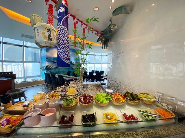 黑蒜烤生蚝,牛排,香煎鳕鱼,美味小龙虾,焦糖布丁,芝士蛋糕,自助火锅,甜点面包,冰淇淋,日本刺身寿司,海鲜自助,新鲜水果摆台