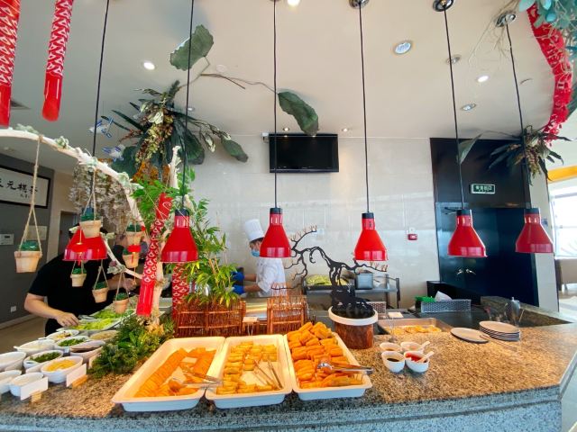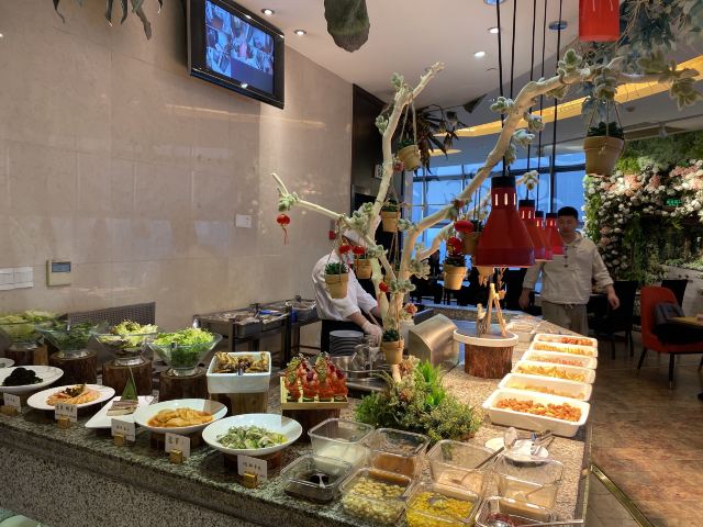 早餐自助旋转餐厅,环境极佳,卫生,整洁,干净,品种丰富多彩,服务工作人员小郑,曹娜等,工作勤快,文明礼貌,用语规范,为这些服务人员点赞👍🏻