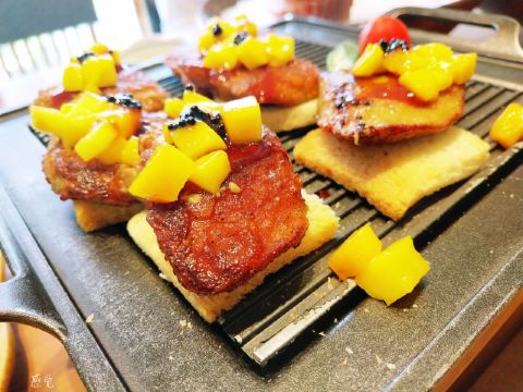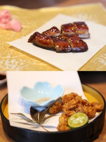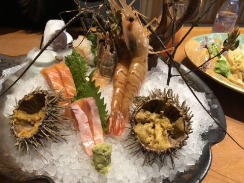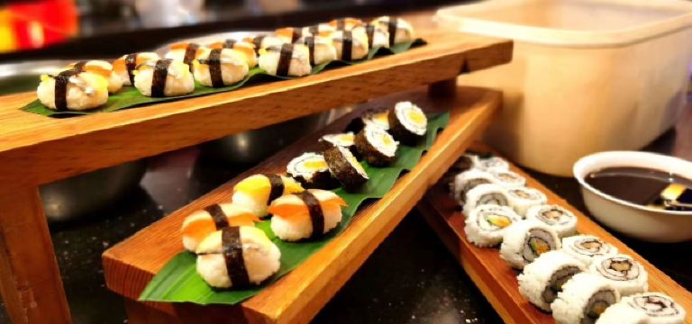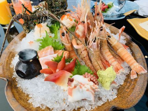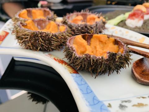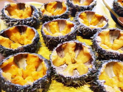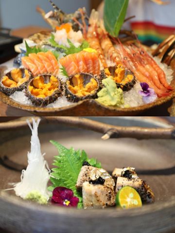 鹅肝,蓝鳍金枪鱼中腹,海胆,牡丹虾,焗蟹宝,香煎银鳕鱼,刺身拼盘,三文鱼,甜虾,炭烤雪花牛肉,烤鳗鱼,焦糖南瓜