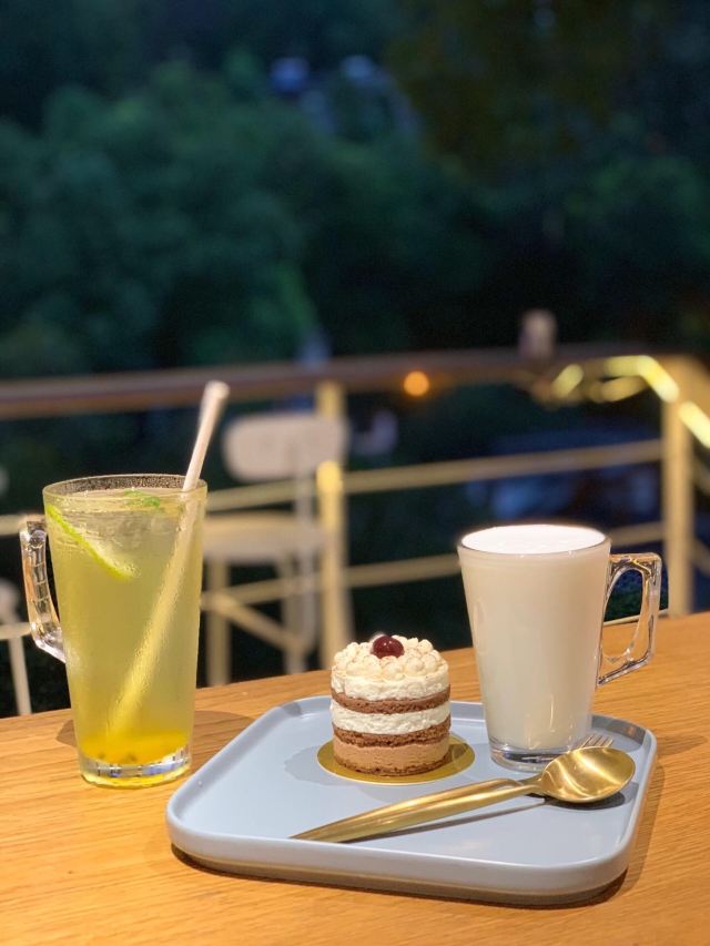 A.MONO Patisserie杭州探店 / 藏在大山深处的法式咖啡店☕️ 遇上台风🌀天气,约了朋友见面,远处被灯光笼罩的发光的房子🏠就是这家咖啡店啦,天还有一些亮,室外吧台印衬的一片青山特别美,微风吹拂过身旁,很舒服...... 环境: 清新怡人,恰似一处秘境,安静里充满着温馨,远看房子又有点日本乡道的店面感觉,店面有2层,还有室外吧台,坐在吧台的感觉太美好了,惬意的让人忘怀所有烦恼。 服务 : 服务也超级好,我们去的时候是老板亲自做的饮品,还贴心的蹭送了我们小零食。 ☑️口感细腻,正是我喜欢的甜味。热牛奶🥛口感一般,有些喝不习惯,朋友点的百香果还挺好喝的 免费薯条真的太好吃了😋奔着薯条我也要再去一次,哈哈哈 。…… 是个能让人心静的地方,下次带上电脑呆一整天! 店名: A.MONO.Patisserie 📍详细地址:西湖区满觉陇路上满觉陇11号 💰人均消费:91💰 🕙营业时间:9:00 - 22:00
