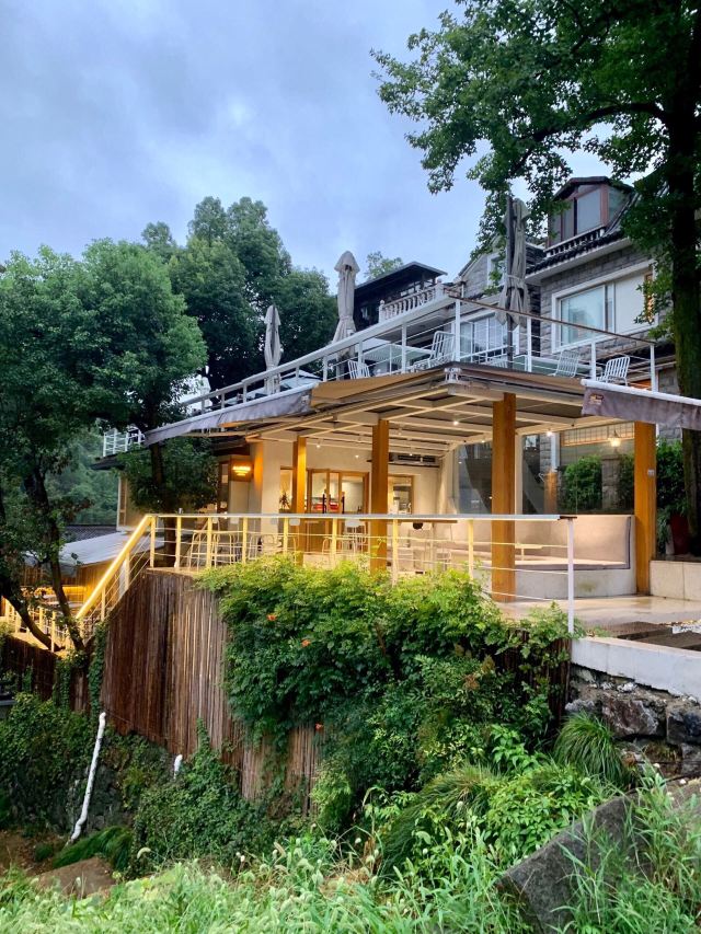 voler22杭州探店 / 藏在大山深处的法式咖啡店☕️ 遇上台风🌀天气,约了朋友见面,远处被灯光笼罩的发光的房子🏠就是这家咖啡店啦,天还有一些亮,室外吧台印衬的一片青山特别美,微风吹拂过身旁,很舒服...... 环境: 清新怡人,恰似一处秘境,安静里充满着温馨,远看房子又有点日本乡道的店面感觉,店面有2层,还有室外吧台,坐在吧台的感觉太美好了,惬意的让人忘怀所有烦恼。 服务 : 服务也超级好,我们去的时候是老板亲自做的饮品,还贴心的蹭送了我们小零食。 ☑️口感细腻,正是我喜欢的甜味。热牛奶🥛口感一般,有些喝不习惯,朋友点的百香果还挺好喝的 免费薯条真的太好吃了😋奔着薯条我也要再去一次,哈哈哈 。…… 是个能让人心静的地方,下次带上电脑呆一整天! 店名: A.MONO.Patisserie 📍详细地址:西湖区满觉陇路上满觉陇11号 💰人均消费:91💰 🕙营业时间:9:00 - 22:00