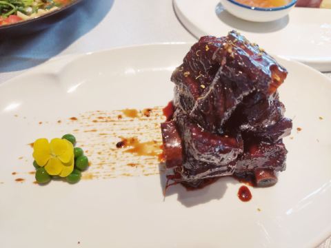 姜姜525秐合餐厅,听名字就感觉风景如画。这家店在西溪湿地旁边的西溪天堂,还有一点难找的,我方向完全找错了,然后是从一个小门进去的。没有什么想吃的硬菜,就点了一些小菜的,摆盘都是很精致的,也都好吃。很推荐。 原茄泡有机时蔬妈妈点的蔬菜。很清爽。桂花糖醋小排小排肉很酥很好吃。就是有一点点的太甜了。 樱花虾拌娃娃菜心这个菜真的是最好吃最好吃的。菜心爽口脆脆的。虾米是那种很干燥的。配上了酱汁。哇哦! 虾饺里面是大的一整颗虾。 普洱肴肉冻本来是想吃那个桃子的甜品的。但是没有了。索性就多点点肉肉吃。这个肉冻透明的地方就像果冻一样,还有一部分就完全是肉。好吃的。吃完了还送了餐后水果,荔枝,甜甜的,开心。