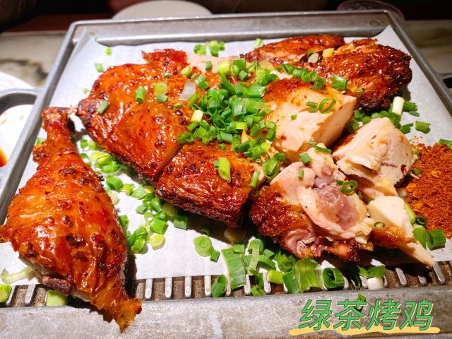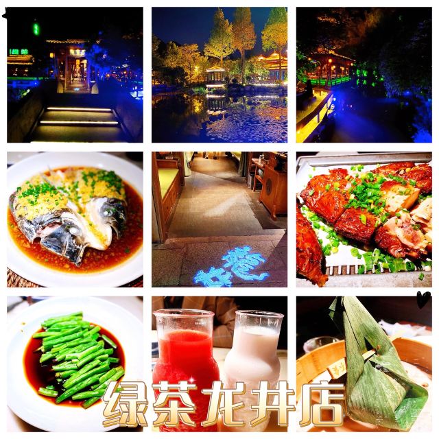 杉尼🌟🌟环境:一直很喜欢龙井绿茶店,不仅仅是因为店的环境,还因为店的食物味道。同样的绿茶菜品,感觉龙井店做的就是好吃😋,会不会因此厨师所处的环境优雅,所以心情愉悦波及菜肴本身?龙井店是绿茶的大本营,是旗舰店,以前从灵隐店搬迁至此,已经有十多年历史了!这里有着茅家埠西湖山水以及龙井茶园的浸润,小桥流水人家般的风景,让食客感受到一幅江南诗情画意的唯美意境。尤其是夜晚时分,灯光映衬,将楼阁水榭树木倒映水中,令人痴醉... 🌟鱼头诱惑:绿茶的招牌菜,用千岛湖鱼头,加上花椒和辣椒一起蒸制,咸鲜味美,令人欲罢不能! 🌟荷叶糯米鸡:荷叶的清香融入糯米和鸡肉,三种食材混合,令味蕾跳动,墙裂推荐!才18元,十分可口美味。 🍲清蒸四季豆:保持了四季豆的本味,只可惜底部的酱油有点过咸... 🌟服务:态度很好,大厅的服务也十分周到。 🚉交通攻略:自驾门口有四个免费车位,其余要停到百余米之外的收费停车场🅿️,不过晚上八点以后免费🆓;公交🚌27路茶叶博物馆站下车。