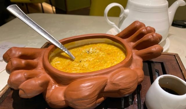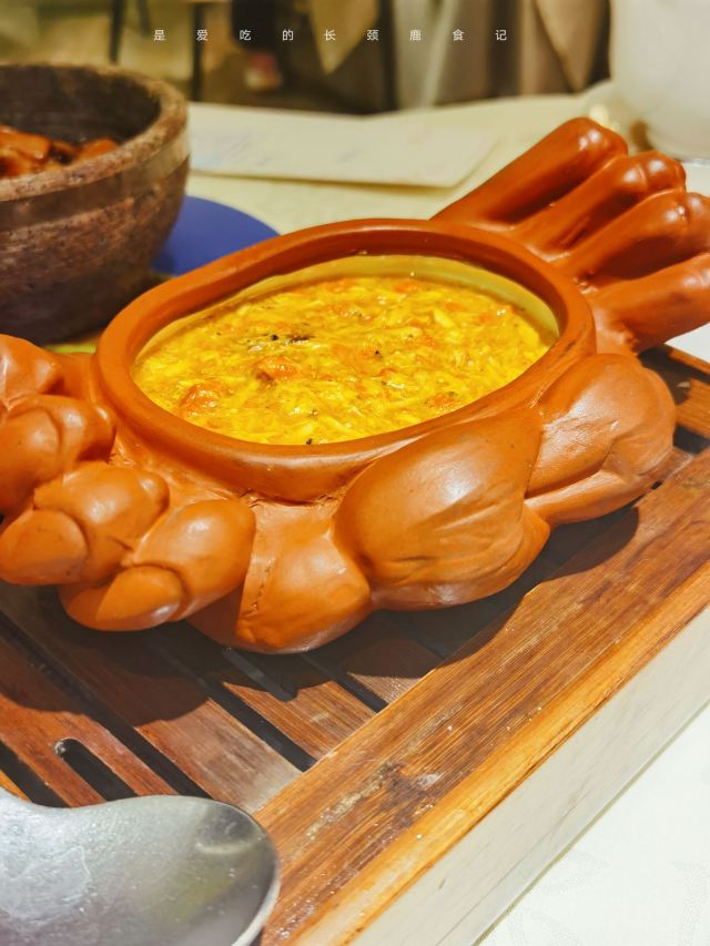 是爱吃的长颈鹿杭州美食 | 这家店仿佛带我晃到几十年代? 或许相遇匆匆,能遇见就是一种浪漫。这家店的格调带我穿越了旧时光,就像老电影里看到的那样复古和雅致。 清炒蟹粉🥢 手剥的好几只蟹,黄澄澄的蟹肉和蟹粉铺满了整个壳,香的流油,拿来拌米饭再合适不过。鲜香的蟹粉味道都覆盖在白米上,一搅拌满口留香。 石锅焖烧猪尾 第一次吃猪尾这道菜,太令我惊喜了。炖烂了的猪尾入口即化,真的很香。 樱桃红酒鹅肝🍬 樱桃鹅肝按颗卖,是我一直很想尝试的一道创意菜。外面是蓝莓酱包裹,里面是鹅肝,吃起来粉粉的,不过由于鹅肝处理不到味有点苦味。 潮汕卤水拼盘🍱 有金钱肚、杏鲍菇、豆干和鹅掌组成。金钱肚和杏鲍菇还不错,鹅掌味道一般。 @是爱吃的长颈鹿主笔 跟着我一起吃遍世界🥢 🕹地址:同乐舫 🍣店名:同乐舫(学院路店) 💎人均:100