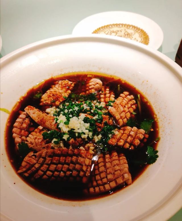 TONGLEFANG杭州美食 | 这家店仿佛带我晃到几十年代? 或许相遇匆匆,能遇见就是一种浪漫。这家店的格调带我穿越了旧时光,就像老电影里看到的那样复古和雅致。 清炒蟹粉🥢 手剥的好几只蟹,黄澄澄的蟹肉和蟹粉铺满了整个壳,香的流油,拿来拌米饭再合适不过。鲜香的蟹粉味道都覆盖在白米上,一搅拌满口留香。 石锅焖烧猪尾 第一次吃猪尾这道菜,太令我惊喜了。炖烂了的猪尾入口即化,真的很香。 樱桃红酒鹅肝🍬 樱桃鹅肝按颗卖,是我一直很想尝试的一道创意菜。外面是蓝莓酱包裹,里面是鹅肝,吃起来粉粉的,不过由于鹅肝处理不到味有点苦味。 潮汕卤水拼盘🍱 有金钱肚、杏鲍菇、豆干和鹅掌组成。金钱肚和杏鲍菇还不错,鹅掌味道一般。 @是爱吃的长颈鹿主笔 跟着我一起吃遍世界🥢 🕹地址:同乐舫 🍣店名:同乐舫(学院路店) 💎人均:100