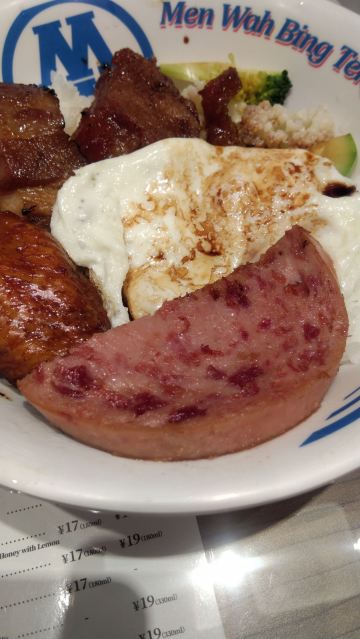 跟小伙伴的平安夜晚餐,是在万象城地下二楼的敏华吃的。排队队伍比较长,不过愿望跟人家一起拼桌,等了十来分钟就进去了。一张大桌,跟一对母女和一对情侣一起坐,大家一起吃茶餐厅,也很开心。 之前囤的开业套餐,价格比现在的便宜些,量很足,不过以主食居多。 跟之前去过的湖滨店相比,万象城店的布局更紧凑些,食物摆盘比较敷衍,味道还是湖滨店的更好吃些。