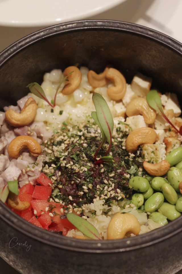 黑松露炒饭,桂花荔浦芋头,泰式冬阴功汤,果木炭火煨榛果芡实牛蒡汤,糖醋莲藕,藜麦椒麻豆腐,孜然烤串,橄榄油煎三种菇,巴蜀豆衣,羊肚菌竹荪野菌汤,松茸汤包