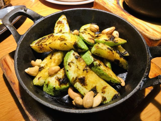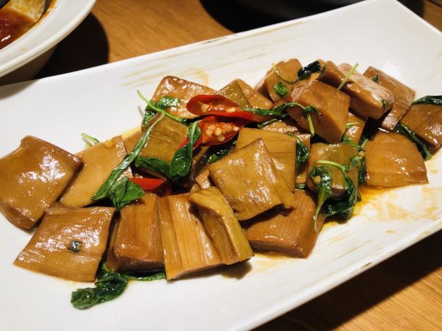 QINGCHUN PERMA订好赴杭机票后,真“朴门”便第一时间将庆春朴门的灵隐店加入了打卡计划中。 🌿 迎着杭城深秋的薄雾,从龙井一路骑行前往灵隐。灵隐支路上各色食肆茶馆鳞次栉比,沿着路一番寻找,终是看到那副熟悉的招牌静静地立在路旁。品牌对禅意的诠释在这家首店体现得淋漓尽致——走入大门的木门,沿着石板路走入餐厅,院内栽种的树木将餐厅的灯光藏匿在树影之下,仅凭地上的石灯照射着路面。餐厅外是一片沙海,被餐厅内的灯光照得明亮,如果是白天抵达则更能体会到那一丝禅意。 🍲 桂花荔浦芋头 这家店使用的是冷做的方式,入口的一瞬间冰凉的口感激发了桂花酱的甜,比热的更能感受到桂花酱那丝清甜。榄菜苦瓜 生苦瓜带着强烈的清脆口感,入口能感受到丰沛的汁水在嘴里迸发,榄菜主要选用的是浸泡榄菜的油,带着榄菜的香气和油润的口感,这道菜主要看的是食材的选材,店家只是简单做了食材的搭配,没能看见太多的研发痕迹。红油榆耳 店员介绍榆耳是榆树上生长的菌菇类食材,肥厚的榆耳口感扎实,只是调味的红油滋味略显寡淡,整体只吃到红油的油润感,少了一丝盐味。佛陀饭 各色蔬菜碎和坚果进行搭配的一款饭,香油和酱油调配的酱汁滋味恰到好处,吃起来有一丝油润和微微的甜感。笋干 是本次最让人惊艳的菜品,红线椒为整道菜提供微辣的底味,金不换带来了丰富的香气,笋排口感扎实,酱汁口味适中。庆春米糕 口感粘度较高,内馅的红豆沙带着一丝椰香,但是口味偏甜且油腻,略显一般。 这一次杭城的庆春朴门体验,有令人惊艳的菜品,也有没有达到预期的菜品。看到此次冬季出新,期待品尝到惊艳的仿荤菜品,结果菜单上皆是常规的菜品。