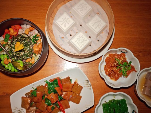 甜儿Cindy自从大蔬无界从杭州消失以后,庆春食堂就在杭城素食界独领风骚,新年才伊始,就连续开出了两家新店,这家坐落在景区的朴门,绝对是重磅出击! 目前餐厅暂行会员预约制,想要去这里的小伙伴记得提前跟店长预约哟!! 📍位置:灵隐支路白乐桥181号 🌿环境:倾巨资打造的庭院,不漂亮怎么可能,卡座包厢都禅意十足,在这里吃饭就是种享受。 🛎服务:不论是入门的迎宾,还是卡座包厢宾至如归的服务,都是非常令人满意的。 「泰式冬阴功汤」 这道菜就不用说了,庆春家的必点招牌菜,不完全照搬泰国的冬阴功汤,以酸爽鲜香为特色,好喝到欲罢不能,我是蛮喜欢的,每回去都会点! 「泰式芒果彩米饭」 米饭颜色五彩缤纷,视觉上就很出彩,口感上不输阵十分软糯,芒果则很鲜甜,也是值得推荐的~ 「佛陀碗」 颜值也是一等一的高,摆盘精细,色彩搭配的漂亮,吃之前需要搅拌均匀,第一次尝试,味道还挺不错的呢! 「香蘭薏米水」 一上来就仙气飘飘,仪式感就很棒!做得很醇厚,比常规版更浓郁,也是点击率很高的饮品之一~ 天然手工,质朴本味的素食,用心专研的菜式,让宾客连吃素食都能吃得很惊喜很开心,这也是我喜欢它家的原因~