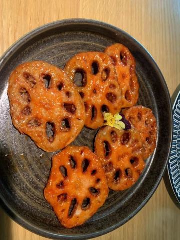 黑松露炒饭,泰式冬阴功,巴蜀豆衣,藜麦椒麻豆腐,西湖糖醋莲藕,生煎包,芋头,橄榄油煎三种菇,桂花酒酿圆子(位),香草素鸡块,孜然烤串,桂花荔浦芋儿