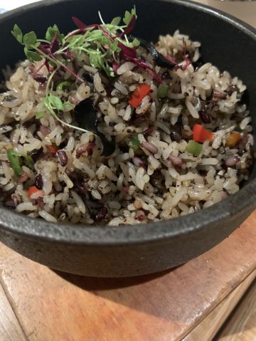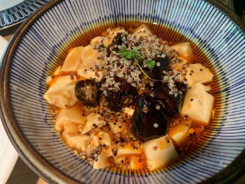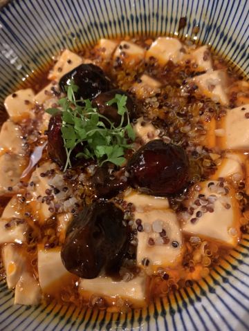 位置在嘉里中心外围,地铁C1出口出来方便,门头不是很清晰,容易错过,还有门口那个门槛,也太坑了,差点摔倒,后面店员跑过来,一直提醒后面的人小心台阶,不知道谁设计的隐患超级大。店家卖的都是素菜,虽然我平常本身蔬菜吃得比肉多,但是实在话我觉得一般,菜的量都很小,黑松露炒饭有点油,椰香南瓜汤只有椰香感觉不到南瓜味,肉骨茶里面的蘑菇口感都不太行,藜麦椒麻豆腐我吃了明白为啥是热门了,就这个口感好还有点滋味。