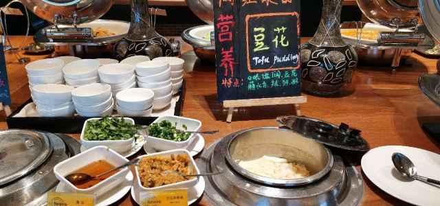 Zhejiang Restaurant ·hecai Buffet Restaurant浙江饭店喝彩自助餐厅环境好,菜品也是非常的丰富,拿早餐来说吧,除了常规的中西式点心之外,果汁都是看着工作人员当场榨出来的,还有豆花,汤团这些中式大家都喜欢的小吃,真是不错的餐厅。