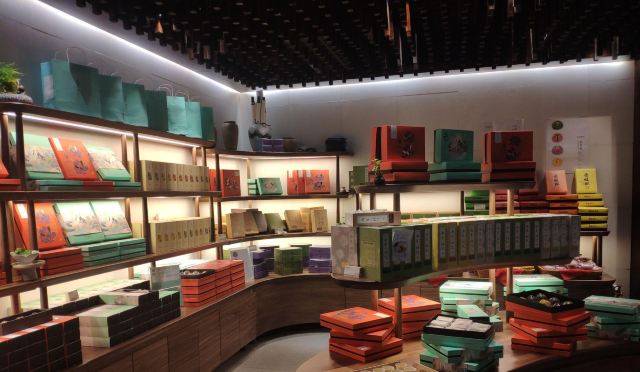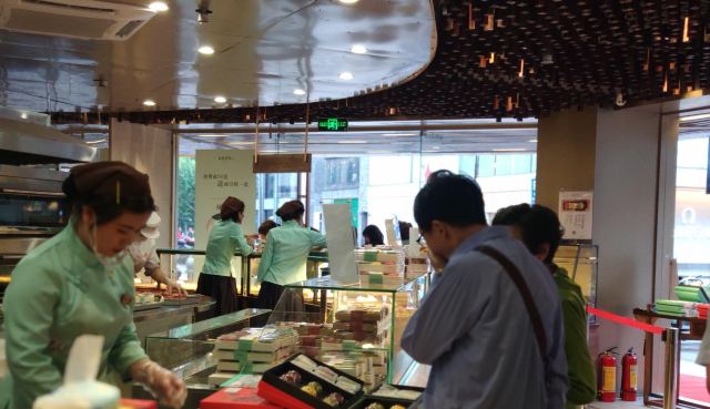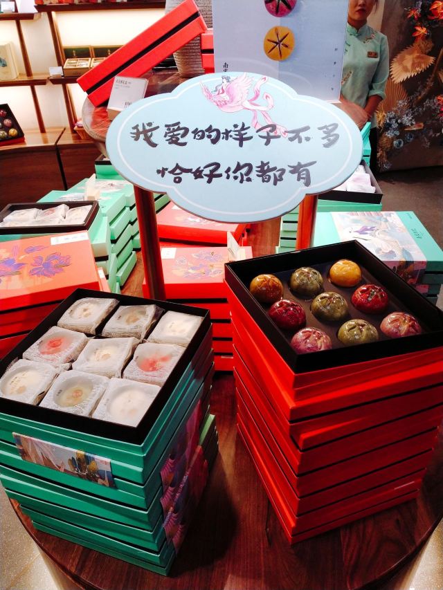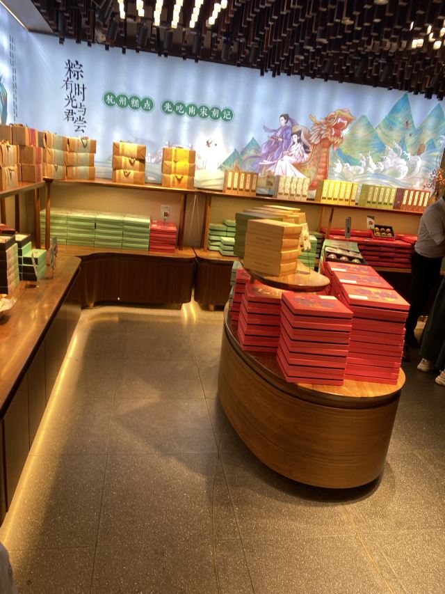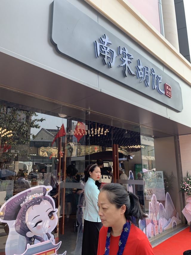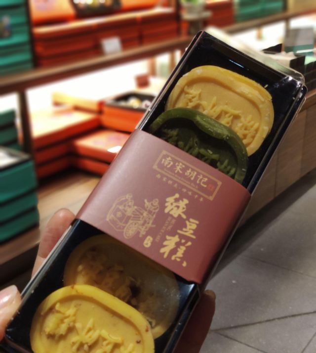 平安夜的蚊子南宋胡记,专营杭州传统糕点,湖滨银泰D座,东坡路上,从来就大名鼎鼎,人气满满。 西湖之畔,游人如织,南宋胡记,作为伴手礼,确实很赞。 [薄荷]环境: 醒目的门头前面,是白娘子和许仙的Q版造型。 店内空间极其宽敞,密密麻麻的几何状灯饰,让景区原本昏暗的老房子,充满了热情的明亮,色彩斑斓的各种礼盒,在空间里俏皮地撞色。 透明的玻璃柜挡不住糕点的浓香,各类糕点大方免费试吃,垂涎欲滴,一饱口福。 [服务铃]服务: 服务员带着帽子口罩,卫生方面非常放心。招呼热情主动,欢迎顾客试吃,装盒、收银高效利索,连锁品牌服务,向来训练有素。 |绿豆糕组合^冰绿豆糕,软软糯糯,清甜细腻。 |白娘子饼^荷花酥售罄,于是换了白娘子饼。一盒三粒,白娘子饼、许仙饼、小青饼。 如蛋黄酥一般,白娘子饼层层酥脆,浓郁的芝士香,伴随着酸甜的蔓越莓粒。当中式糕点与西点经典元素结合,舌尖回味,流连忘返。 南宋胡记的礼盒包装都优雅精美,自己吃或送人两相宜。 当蒂芙尼色的手袋里,装上蒂芙尼色的礼盒。 南宋胡记,蒂芙尼色的杭州回忆,仿佛西湖盛夏的荷叶色,如此沁人心脾。