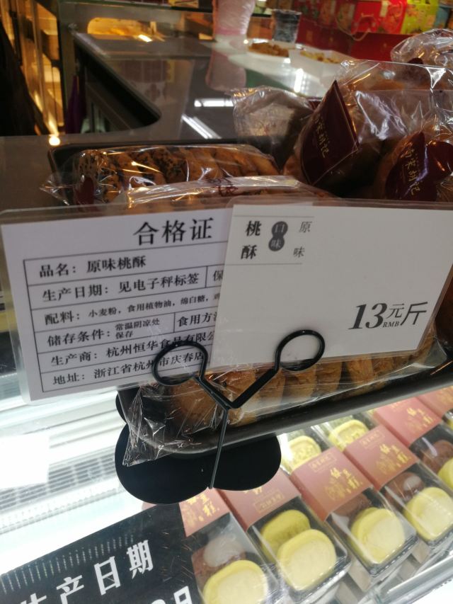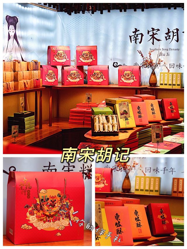 xxy259这家南宋胡记开在庆春路世纪联华超市内,一楼上行的电梯口一侧,早前有秒到一份原味桃酥的券,兴冲冲的赶在开业周到店兑换,结果店里排队的阵仗呀~~~~~~好不容易排到队了,被告知“早就换完了”……   第二天外出在城站附近,早上办完事又特地过来一趟,11点都没到,结果早市的这一波桃酥已经售罄,不然要等下午配送来货才有,生气!城北人民来一趟不容易鸭~~~~~~店员说可以申请退款,我不!我要吃桃酥!!惹的店员都忍不住乐了,建议我等开业的优惠活动结束后再来,到时候生意应该就正常了。   一周后我又来了,果然店里顾客少了很多,每种产品都有足量的备货,终于是“一二不过三”的给兑换成功了。   这次兑换的“原味桃酥”是店里的其中一款明星产品,原价是13元/斤,包装好的一袋正好装9片,口感很酥脆,余味也很香,在家泡了杯奶茶(咖啡也ok),咬着桃酥,妥妥的一份“中式下午茶”,哈哈。   杭州的“南宋胡记”近一年来开新店风头强劲,而且优惠力度也挺大的,在很多平台上都有单品团购或代金券抵扣的活动,部分门店还有外送服务,小伙伴们可以就近选择配送哦~~~~~~~   热销榜的明星产品推荐:许仙饼/白娘子饼/法海饼(12)、荷花酥(12)、绿豆糕(3)、东坡酥(3)、一口酥(12)、(4.5)、红豆奶酥(5)、桂花饼(3)、龙井茶酥(12)、香芋酥(12)、榴莲酥(4)、凤梨酥(6)、江南鱻糕等。