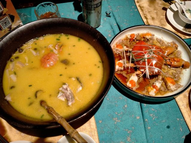 清明前去的龙井村,都是人堵车厉害,都挤在村口,小车,大巴,公交车,晚餐订在这家,屋里都爆满了,只能在茶园里吃,环境不错就是有点冷(3月24),大概5⃣️月份左右坐茶园用餐应该舒服,服务态度很好,菜色也不错!