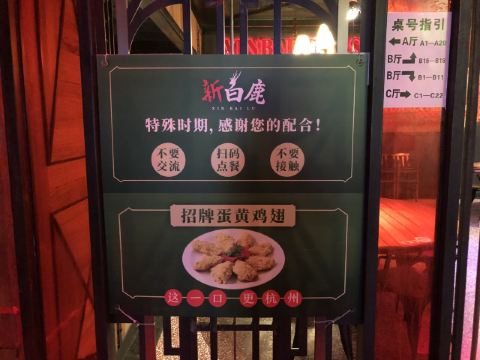 新白鹿餐厅创办于1998年,现已有多家分家,以杭邦菜为主打,融合各大菜系做法,蛋黄鸡翅为其招牌菜。此外,糖醋排骨、蛋黄子排、鱼羊鲜、上扬菠菜、话梅花生、东坡肉等等菜品,几乎为桌桌必点,可见其受欢迎程度。