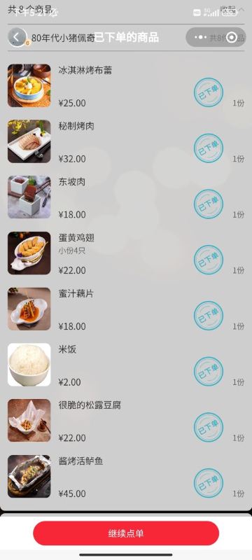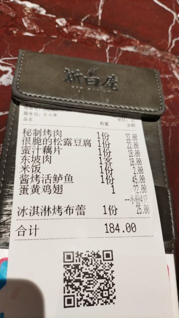 蛋黄鸡翅,糖醋排骨,东坡肉,话梅花生,鱼羊鲜,蛋黄南瓜,糖醋里脊,冰淇淋烤布雷,很脆的松露豆腐,香烤鲈鱼,香酥鸭,蛋毯日本豆腐,酸菜鱼