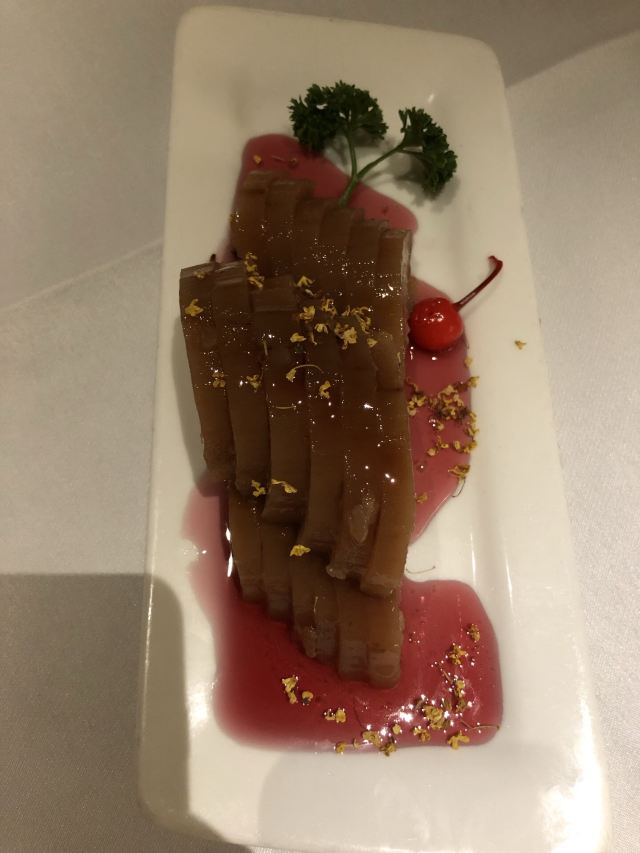第一次来运河店吃,西湖醋鱼是必点,又点了一个糟熘鱼片和桂花藕,杭帮菜里的糟熘鱼片和鲁菜的糟熘鱼片不同,没有加醪糟,口味偏咸,但鱼片韧性十足,十分有嚼头,西湖醋鱼每次来吃都是欲罢不能,而且也从未让我失望过。