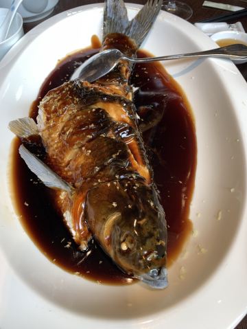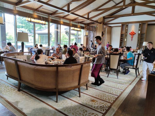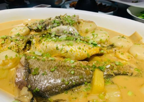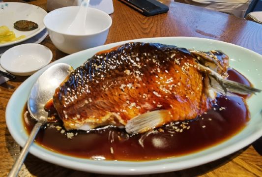 寂寞侯jojo当紫红色的小觜子冒出来了水面,夏天就来了。 夏季的紫薇厅一如既往让人满意,都说是西湖醋鱼,紫薇最宜,每次推荐给来杭的朋友,均觉满意,自己却从未尝过,今日一点,盛名之下,果然无需。 「西湖醋鱼」:醋鱼之妙,在醋不在鱼,这话若在业内来看,大概是十分外行,贻笑大方了,不过仍感调配之妙,让人感觉并非食鱼而是食蟹了。 清代诗人袁枚《随园食单》上记载:“鱼不可大,大则味不入;不可小,小则刺多。”说的就是用草鱼做的西湖醋鱼,那时候称这道菜为“醋楼鱼”。 草鱼做的西湖醋鱼肉质鲜嫩,但是刺多,如若养殖疏忽,鱼肉容易有土腥气。 所以杭州有的酒店餐馆开始用笋壳鱼、鳜鱼,甚至用东海大黄鱼来替代传统的草鱼做西湖醋鱼,但味道却始终不及用草鱼做的西湖醋鱼,甚至有食客拒绝用其他鱼种来做这道菜。 现在国宾馆用的是钱江之源的何田清水鱼,刺真的很少,但作为草鱼,仍有些许草腥,这是就由司厨之功居其六的师傅们烹调调配渐趋完美了。 值得一提的是作为招牌菜,性价比其实挺高的,点一份小份足够2-3人食用了。 「酥皮茄仔」:别哄我了,茄子跑出这个味儿来了, 我们也不用种粮食,只种茄子了。 这也不难。你把四五月里的新茄包儿摘下来,把皮和穰子去尽,只要净肉,切成头发细的丝儿,晒干了,拿一只肥母鸡靠出老汤来,把这茄子丝上蒸笼蒸的鸡汤入了味,再拿出来晒干。 如此九蒸九晒,必定晒脆了,盛在磁罐子里封严了。 「金桂酿三桃」:夏日甜品添了几许金秋桂色,但不知若能冷藏,滋味又是如何。 「西湖莼菜汤」:戏子的腔,厨子的汤,比起大名鼎鼎的醋鱼,并不显山露水的莼菜汤亦见功力。 中国饮食讲究“色香味”俱全,一个好的厨师,应该以食材搭配合理、火候拿捏准确、摆盘造型优美,甚至刀工雕刻精妙,赋予菜肴以“色”;以煎炸炒炖腌蒸拌等手法,灵活运用调料,赋予菜肴以“香”和“味”。如此不就足矣了么? 然而,这老话里为什么单单把“汤”拎出来?竟与唱戏之“腔”相提并论?什么汤如此重要? 实际上,这里的“汤”,并不是“番茄鸡蛋汤”、“白菜豆腐汤”之类的家常汤菜,而是指的旧时大厨烹饪中不可或缺的“高汤”。 一锅熬得鲜浓醇厚的高汤,在没有味精鸡精的年代,是厨师为菜肴提鲜增鲜的最大倚仗。 [环境]:国宾馆西湖第一名园,这也算饭后散步的一个隐藏福利吧,不过紫薇厅本身并不大,散座很少,节假日不想排队,还得赶早!