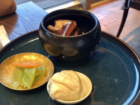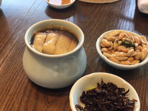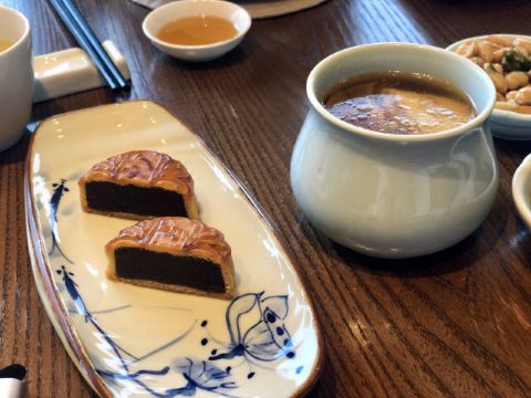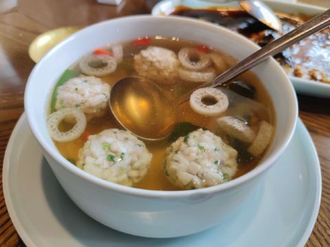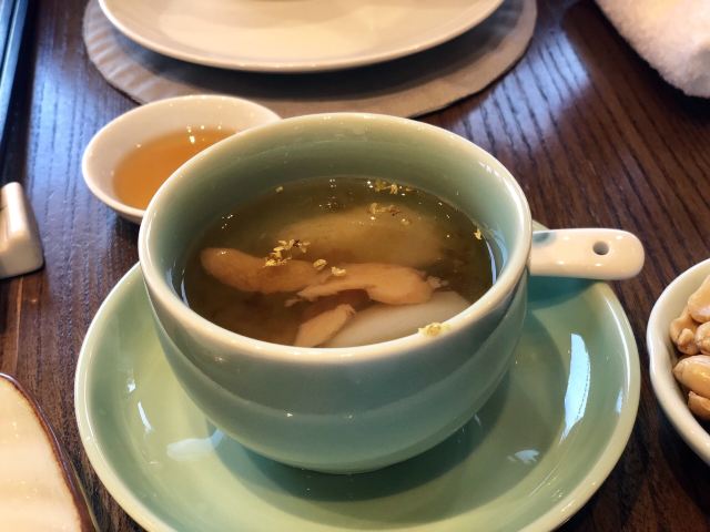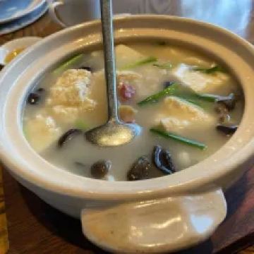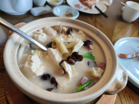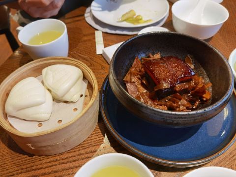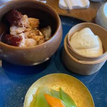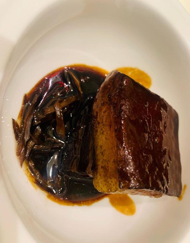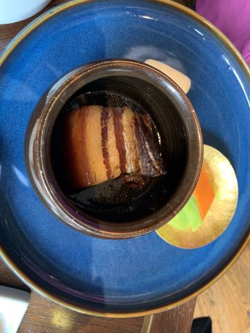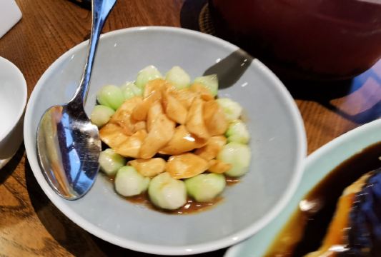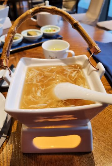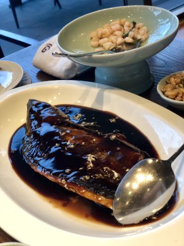 Zi Wei Hall龙井虾仁没太必要点,单价420+服务费,但是口感和分量在里面算性价比比较低的,龙井的味道不是很明显,是整顿饭最不满意的一道。 西湖醋鱼和东坡肉是每次必点,重点推荐这两道菜。 紫薇厅的西湖醋鱼算是一绝,鱼肉鲜嫩,非常细腻,说入口即化也不为过,这次就是突然有点想吃醋鱼所以又来了一趟杭州,价格也不贵,整尾290,半尾150,我们两个人吃没吃完,有点浪费。 东坡肉是真的做到肥而不腻,没有什么吃肥肉的口感,平常不敢吃肥肉的姑娘们都可以试试,我个人平常基本不沾肥肉,油腻的东西都不怎么吃,吃起来一样不觉得腻。 桃子味的这个甜点口感也很棒,我们饭后觉得好吃又点了一盅。