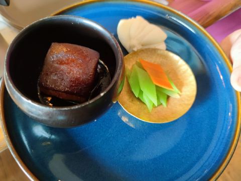 喵了个咪了个咪龙井虾仁没太必要点,单价420+服务费,但是口感和分量在里面算性价比比较低的,龙井的味道不是很明显,是整顿饭最不满意的一道。 西湖醋鱼和东坡肉是每次必点,重点推荐这两道菜。 紫薇厅的西湖醋鱼算是一绝,鱼肉鲜嫩,非常细腻,说入口即化也不为过,这次就是突然有点想吃醋鱼所以又来了一趟杭州,价格也不贵,整尾290,半尾150,我们两个人吃没吃完,有点浪费。 东坡肉是真的做到肥而不腻,没有什么吃肥肉的口感,平常不敢吃肥肉的姑娘们都可以试试,我个人平常基本不沾肥肉,油腻的东西都不怎么吃,吃起来一样不觉得腻。 桃子味的这个甜点口感也很棒,我们饭后觉得好吃又点了一盅。