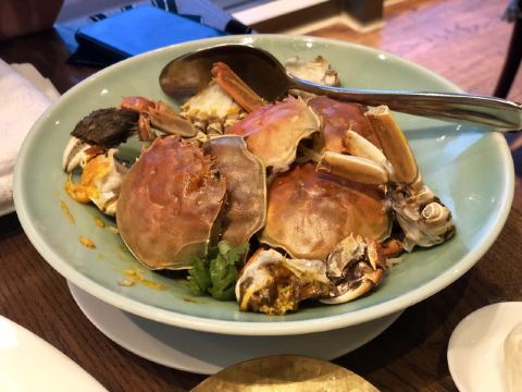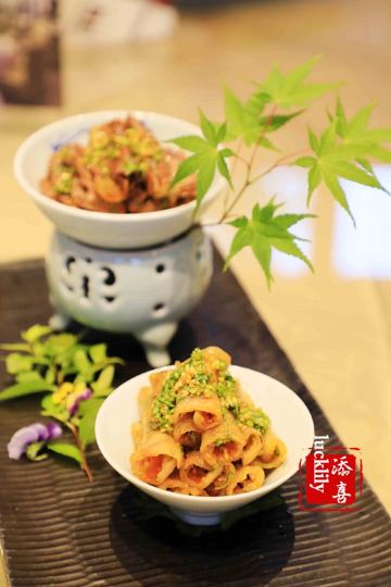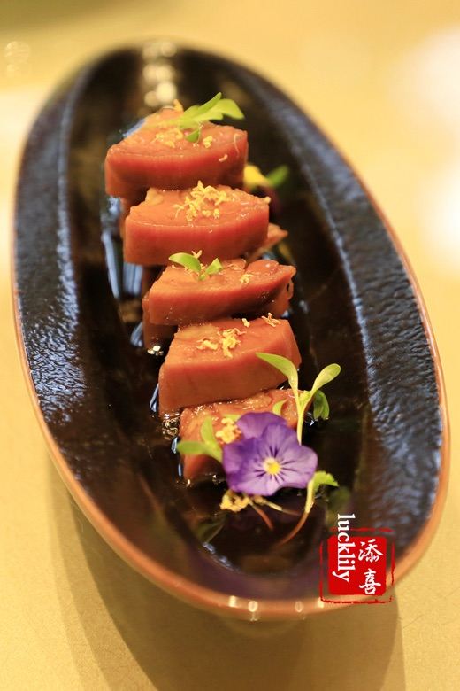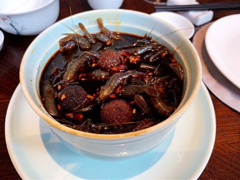 添喜lucklily其实是一段比较久长的记忆了,但是萦绕在舌尖美味的感觉于我是不管多久都会记忆绵长的。 大抵是个阳光灿烂的日子,傍晚到的早,国宾馆八号楼被斜阳镂出金边,显现得别的庄重。紫薇厅在八号楼的一层,从正厅走向紫薇厅会环绕过八号楼中庭的荷花池,此时风景甚好。 紫薇厅最好的包厢,三面都是落地的玻璃窗,置于风景中。 杭帮菜,忠于老底子的传统口味,却在摆盘、内涵上予以了新的创意。 香酥鲚鱼,这鲚鱼产于太湖,此时正是围捕梅鲚的旺季。脆炸到入口即化,连鱼骨都是酥香。 很难得可以在杭州吃到醉虾了,而这杨梅酒醉的河虾真是融入了思念里醉童年的味道,想来儿时,饭桌上父亲筷子夹来的自家当渍的烧酒杨梅时的情形,那必是人生中最美的夏天日,此时的河虾是一年中最大的,生鲜的口感肉质滑嫩。 与时俱进的蓝鳍金枪鱼、三文鱼、甜虾配鱼子酱刺身拼盘系隐藏菜单,刺身没有技巧,完全在于选材。国宾馆紫薇厅的品牌保证,完全不负舌尖的期待。 头道热菜宋嫂鱼羹按位上,盅盅都是饱满的美意,鱼肉丝儿切的极细极细的,丰富的配料,喜欢那味微微的酸,一餐的好胃口也就被撩了起来。 西湖醋鱼是最具有代表性的杭州名菜,只是目前杭州能把这道经典杭帮菜做好的餐厅真是屈指可数,紫薇厅用笋壳鱼代替了草鱼,没了土腥味儿,草鱼多刺的问题也解决了,我还是跟小时侯一样,喜欢吃那一口糖醋酱,每夹一块鱼肉,都要在酱汁里翻转一圈,待裹满了酱汁吃起来真是甜美裹着鲜嫩的丰富层次、 极品斩鱼圆是大爱,杭州的鱼圆自古有名,而紫薇厅的鱼圆却是自具风味,用了竹蒸同煮,佐以菜心,不仅味羡,汤色清澈,这道清淡而不失鲜美的靓汤真彰显了杭帮菜的宗意。 杭州人爱吃虾、蟹,钱塘双味虾就特别令人中意,杭州炒虾蟹配松煎虾饼,好吃胜在虾蟹取材的鲜活,用料的着实。 清炒百合、四季小菜心虽是两道常见的蔬菜,火侯和摆盘却是极显造诣了,清口解腻。 主食桂花糖年糕和葱油饼,妥妥的怀旧风。 甜点竟然是杨梅酒冰淇淋配鲜果,完美的压了轴,这一次味蕾被宠爱得开了花。