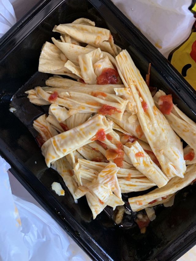 对于久久丫的东西还是挺喜欢的,这次出去玩想着火车上无聊就去离单位最近的一家久久丫买了点吃的,鸭脖是必不可少的,买的是最爱的烤脖味道不错,还买了藕和腐竹,用的调料味道都差不多,主要是食材不同,这次买的几份都非常好吃