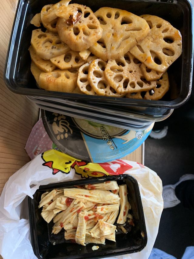 旅游度假对于久久丫的东西还是挺喜欢的,这次出去玩想着火车上无聊就去离单位最近的一家久久丫买了点吃的,鸭脖是必不可少的,买的是最爱的烤脖味道不错,还买了藕和腐竹,用的调料味道都差不多,主要是食材不同,这次买的几份都非常好吃