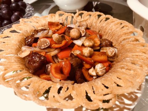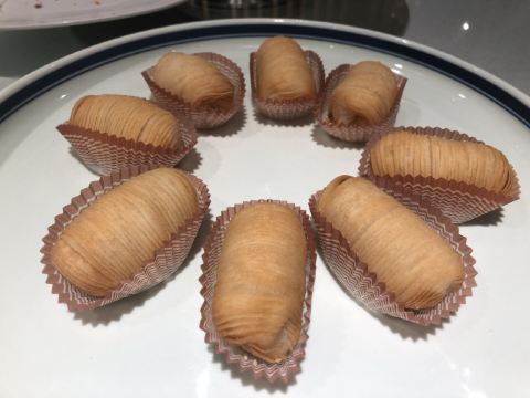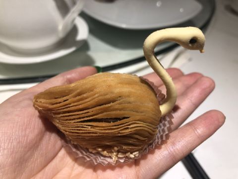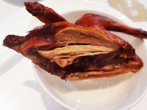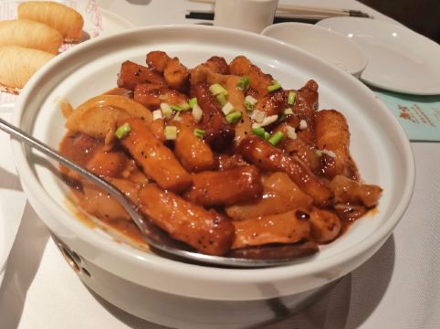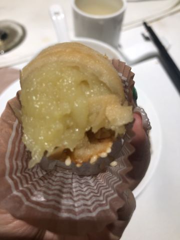 Tang Gong Seafood Fang ( Fu Chun Road )几年前,老单位的部门聚餐有一回就吃的唐宫,那次吃唐宫的乳鸽,虾饺和榴莲酥等,真是惊艳到了。 难得几个关系不错的老同事小聚,大家一致决定再来唐宫回味一下。商场电梯直接上顶楼,感谢帅哥同事提前预定了桌子,周末这里人气很旺,如果没有提前预定,就要排队等位了。 金奖乳鸽,必点啊,按人头一人一只,大家吃的过瘾。乳鸽既美容养颜,又营养滋补,何况唐宫的乳鸽确实做的好吃,不仅女士爱吃,男士也喜欢吃。 服务员推荐的黑松露南瓜,外观确实不好看,但是味道却很不错,南瓜炖的酥烂,撒了黑松露,没想到南瓜用中西结合的做法也会这么美味。 榴莲酥,一人两个是标配啊,不爱吃榴莲的同事也喜欢吃这里的榴莲酥。天鹅叉烧酥,颜值很高,适合拍照。