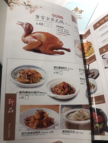 九层塔鹅肝炒牛肉,蜜汁叉烧包,榴莲酥,唐宫金奖乳鸽,唐宫虾饺皇,唐宫金银海鲜泡饭,豉汁蒸凤爪,唐宫葱油饼,金奖乳鸽,脆皮鲜虾红米肠,蜜汁叉烧,飘香榴莲酥,豉汁蒸排骨,红豆糕,招牌榴莲酥,唐乳鸽,XO酱焗肠粉,雪媚娘,皮蛋瘦肉粥