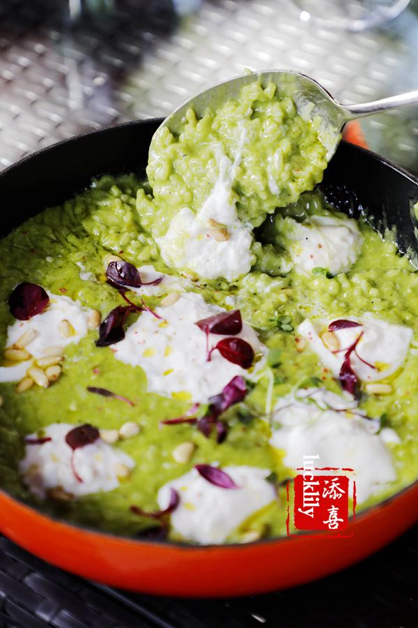 芦笋烩饭,自家腌制三文鱼,嫩煎伊比利亚猪扒 ,外祖母的牛肉酱宽面 ,玛格丽特披萨,布拉塔芝士