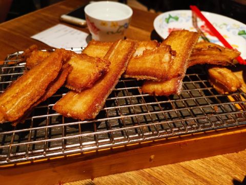 杭州必吃菜有点多,最不能少的就是老头儿油爆虾,话说从没吃到过油爆河虾,其实沼虾是最好吃的,虾的个头大肉多,虾肉又嫩,其次推荐的就是干煎带鱼,杭州吃过两次,带鱼都没有在上海的好,煎的火候总觉得有点欠缺,上海吃的基本都非常好,肉厚但是外脆里嫩,入口即化的感觉。这次尝试了糯米蒸排骨,有点粽子的味道,排骨的肉很嫩,味道不错。