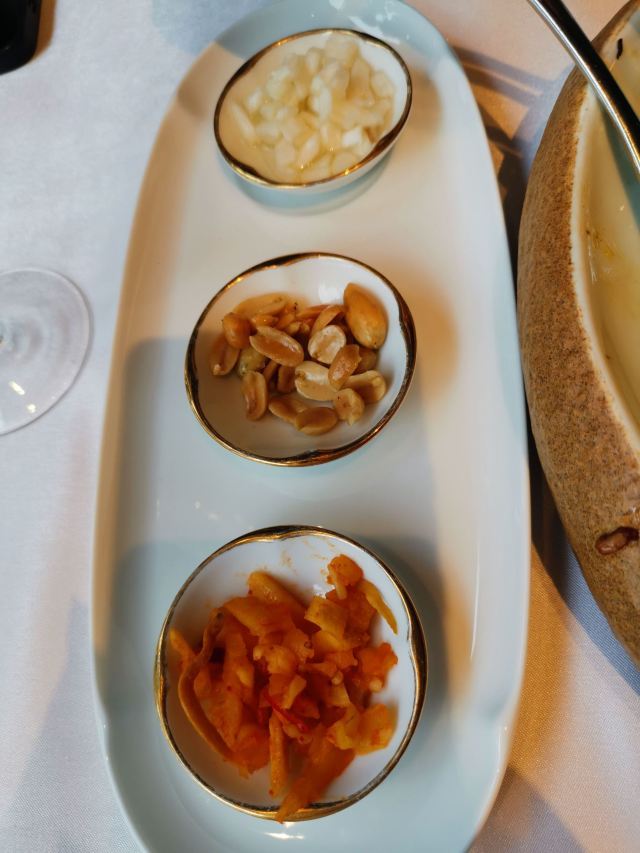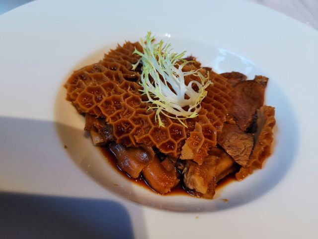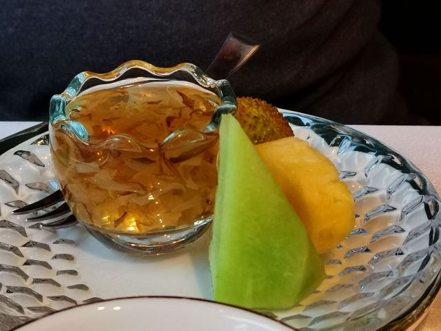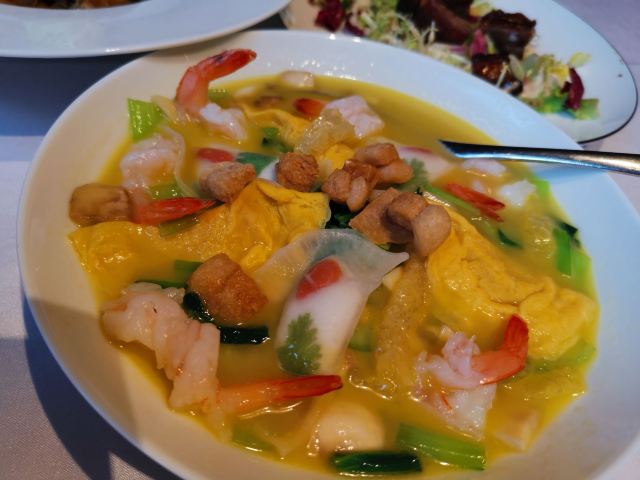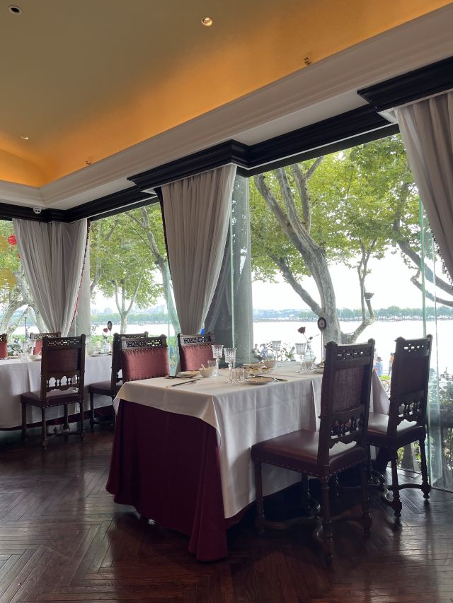 餐厅位于一家历史悠久的酒店内,就在西湖边上,窗外风景不错,装潢风格偏欧式,厚重而有格调,处处都彰显着年代感。这里提供的是正宗的杭帮菜,杭帮菜中著名的龙井虾仁、西湖醋鱼做得都不错。