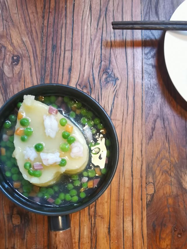 拾年主题庭院餐厅是一幢类似民居的小别墅,外面有露天位,里面的环境具有小资情调。餐厅做的是创意菜,人气一直很旺,招牌拾年私房鱼用酸汤做底,比较开胃;拾年土豆泥做得很细腻,里面混合了青豆、胡萝卜丁;桂花营养米汤装在复古的热水瓶里,甜甜的滋味带来满满的幸福感。