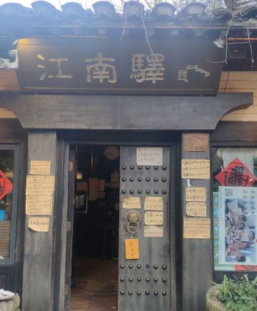 amydog理解不了大家都说江南驿是有多好吃🙃一定是艾小米自己的问题 2023-3-24 杭州案内人小狐狸强推的江南驿,说他身边的同事朋友都说好吃,吃了又吃,还包括欧美客户都带过来吃了赞不绝口 首先,江南驿就不是一家杭帮菜,或者说更不是江浙菜了,妥妥辣系地区融合菜吧 【口味】 |椒麻鸡^128,鸡的分量是足的好像整只鸡,但真的吃不惯了,又辣又麻,鸡的本身也略柴,小狐狸说好吃到他还叫过江南驿跨城外卖椒麻鸡...这 |醉青膏蟹^188,也算是很贵了,就是很普通的生腌醉蟹做法 |辣炒花蛤^77,就吃了一只直接劝退,辣到没有办法吃第二只了... 一顿饭基本没什么能吃的,只要就靠|桂花糖年糕^,|孜然菠菜^|南乳 仔排^|卤鸭^吃了个半饱,可能是嗜辣星人的天堂吧 【环境】 关于这种墙上挂黑板写菜单Style,上海不是几百年前就有的嘛 【服务】 骨盆满了的小伙伴招呼小哥哥换骨盆,直接回答自己去倒在旁边垃圾桶😂 都说是网红店一直要排队,而且是那种起码一小时以上的队伍,艾小米运气也真不错,龙井村下来滴滴到达江南驿,差不多7点,店里都坐不满的😉 最近修路,滴滴司机都不认识了,最后一段墨墨黑的路是要靠自己走上去的 人均174,至少艾小米觉得基本没吃到什么,当然同桌也有两个小伙伴骨盆满了三次...